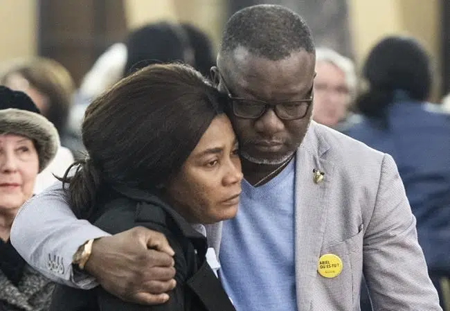 MONTREAL — The father of a 10-year-old boy who disappeared in Montreal one year ago stood by a church altar Tuesday night and defiantly told the roughly 200 people gathered that his son is still alive.