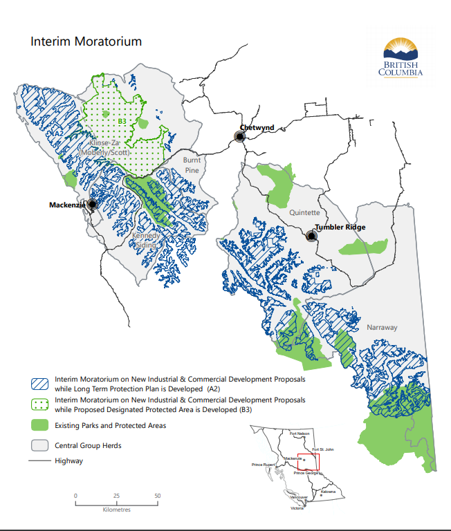 BRITISH COLUMBIA–The government is implementing an interim moratorium on new resource developments in parts of northeastern British Columbia.