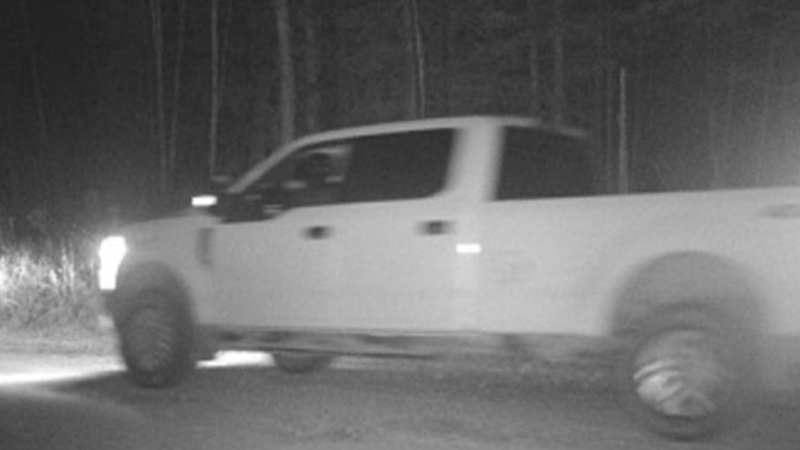 A security camera captured images of a pickup truck in the area late at night. The truck is not associated with any of the properties. RCMP say it looks like a newer model Ford F-350. Anyone who can identify the vehicle or its owner is asked to contact RCMP, as it is considered a vehicle of interest.