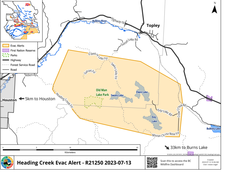 HOUSTON — The Regional District of Bulkley-Nechako has issued an evacuation alert for the Heading Creek FSR, located 5 kilometres from Houston, B.C.