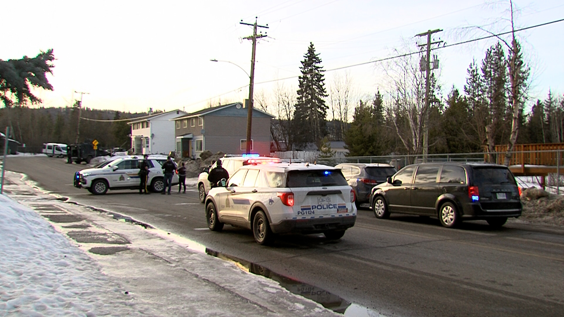 PRINCE GEORGE – A police incident that saw a heavy police incident and several arrests made took place on February 24 at First Avenue and McIntyre Crescent. Many RCMP members, including multiple police vehicles and the Emergency Response Team (ERT), blocked the area off as officers responded to an incident involving one household.