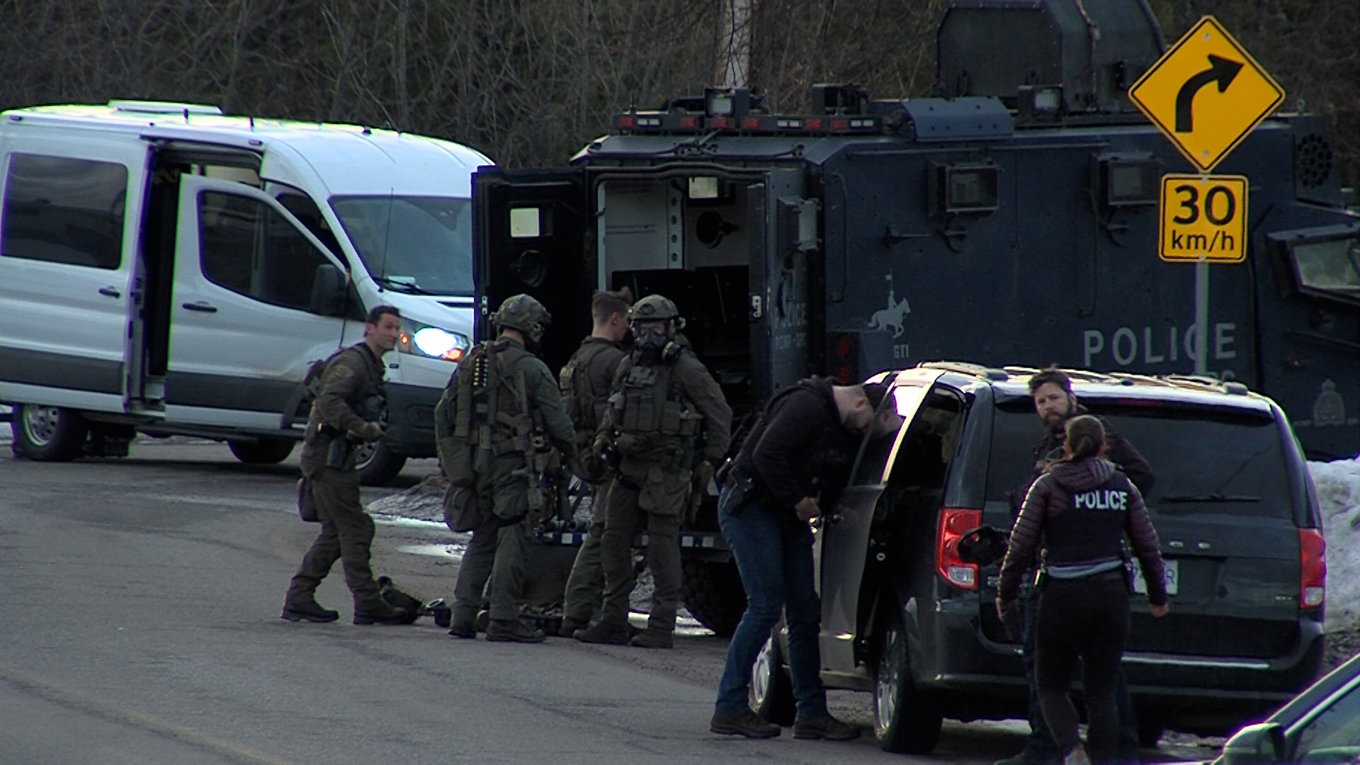 While there is no official word from the RCMP, witnesses to the scene report multiple shots fired, and police using a wide variety of equipment such as a robot that went inside the house, what appeared to be smokebombs, and more.