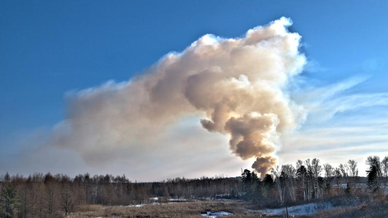 Smoke and flames may be visible near Prince George