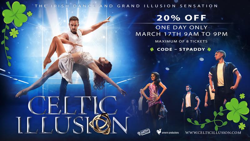 Select tickets to Celtic Illusion 20% off on St. Patrick's Day only