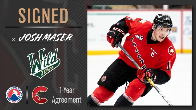 Great news for outgoing Cougars Captain Josh Maser.It was announced Wednesday morning that the Houston B.C product has signed a one year deal with the American Hockey League's Iowa Wild.Maser spent fo...