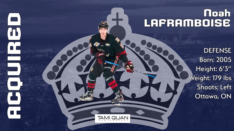 PRINCE GEORGE - The Prince George Spruce Kings have acquired 18-year-old defenseman Noah Laframboise ('05) from the West Kelowna Warriors in exchange for Future Considerations.A product of Ottawa, Ont...