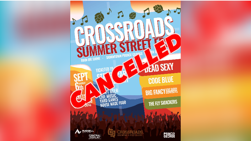 PRINCE GEORGE - The organizers of the CrossRoads Street Fest have cancelled the event set that was set to take place Saturday (Sept. 6) evening after a fire at the downtown Prince George brewery.Notic...